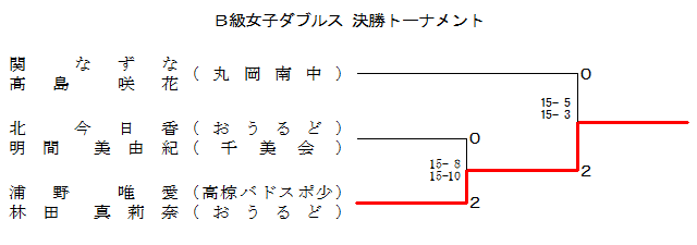 | ŠÖ ‚È‚¸‚È ûü“‡ ç‰Ô (ŠÛ‰ª“ì’†ŠwZ) | › 9-15 15-13 15-12 | @ | › @|‚w | › 15- 5 15-14 | ‚P |
